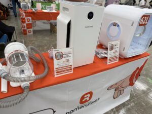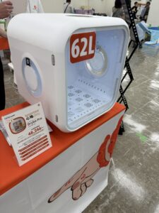 homerunPETというブランドのブースでは、ペット専用の空気清浄機などを展示していました。ペットのために作られた家電って、普通の家電とは視点が全然違って面白かったです。