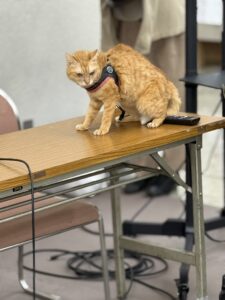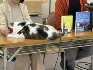 ステージでは**「旅にゃんこ」**の作者さんと猫ちゃんたちが登場!47都道府県を旅した猫がテーブルの上でくつろいでいる姿、めちゃくちゃ癒されました。オレンジの子と白黒の子、2匹並んでいる光景が最高でした。